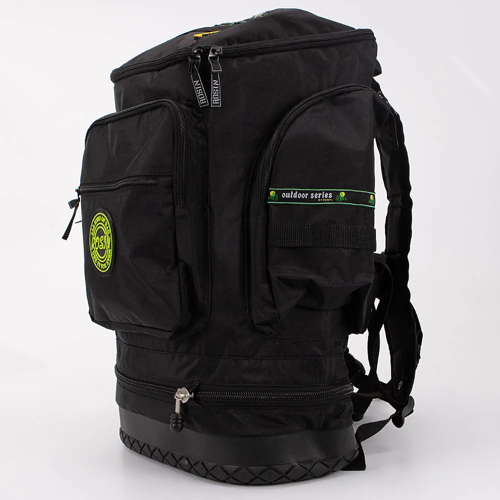 Туристический рюкзак от торговой марки Росин выполнен из плотного материала жатка в практичном чёрном цвете. Вместительная модель с лямкой-переноской и плотными широкими регулируемыми плечевыми лямками с нагрудными фиксаторами и кольцами для крепления. Уплотненная спинка. Закрывается клапаном на молнии. Глубокое отделение с частичной текстильной подкладкой. На лицевой стороне – два кармана на молнии. По бокам – вместительные накладные карманы на молнии. Имеется раздвижка на молнии для увеличения объема. Дно модели оснащено прорезиненной накладкой для устойчивости и защиты от износа. Рюкзак весом 1,44 кг рассчитан на объем 33 литра.