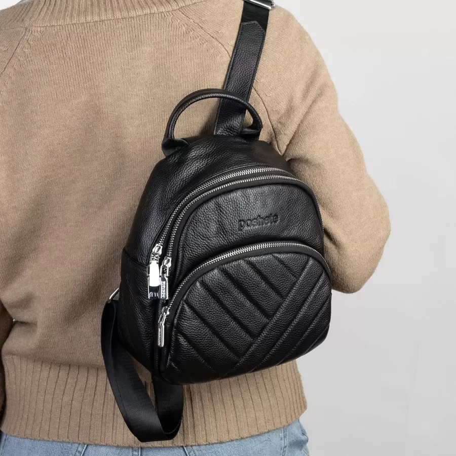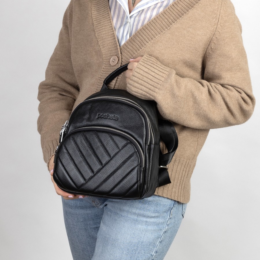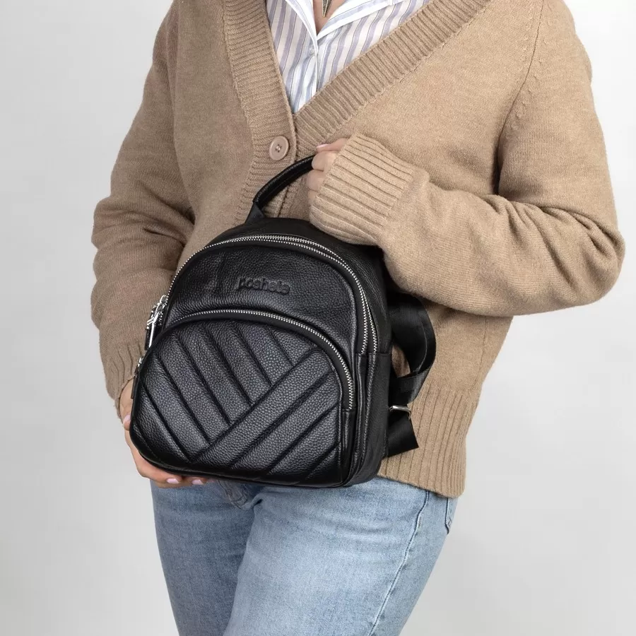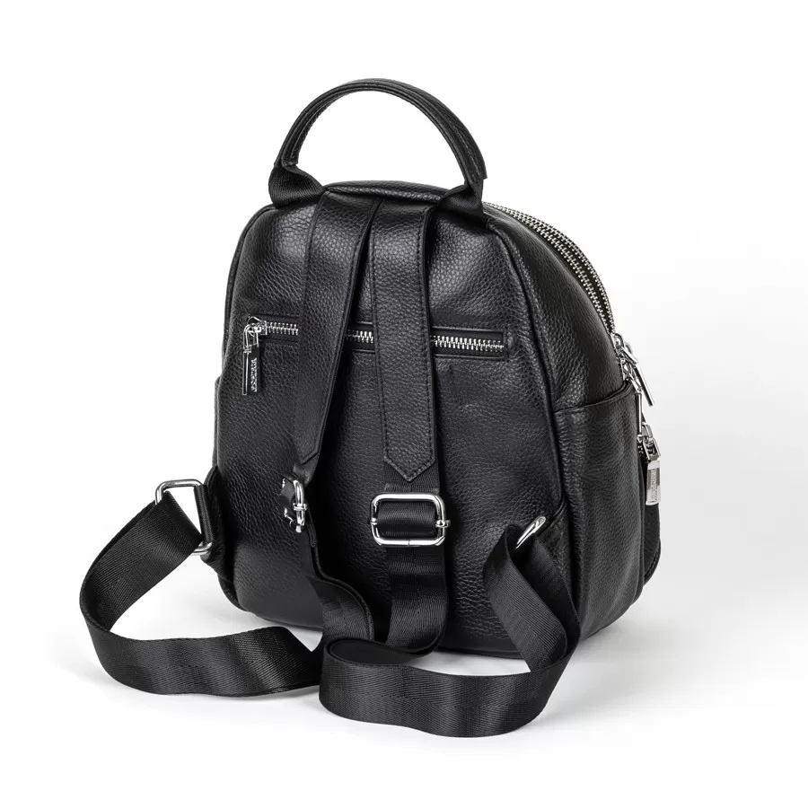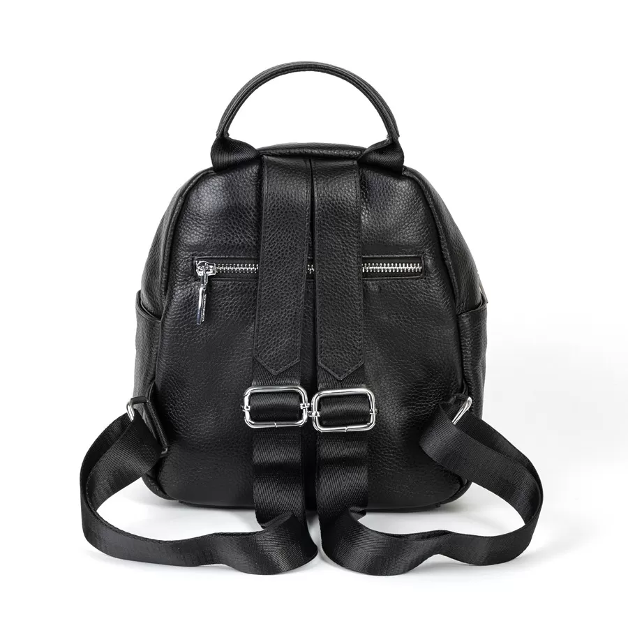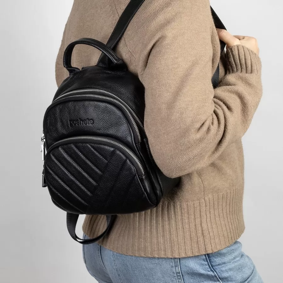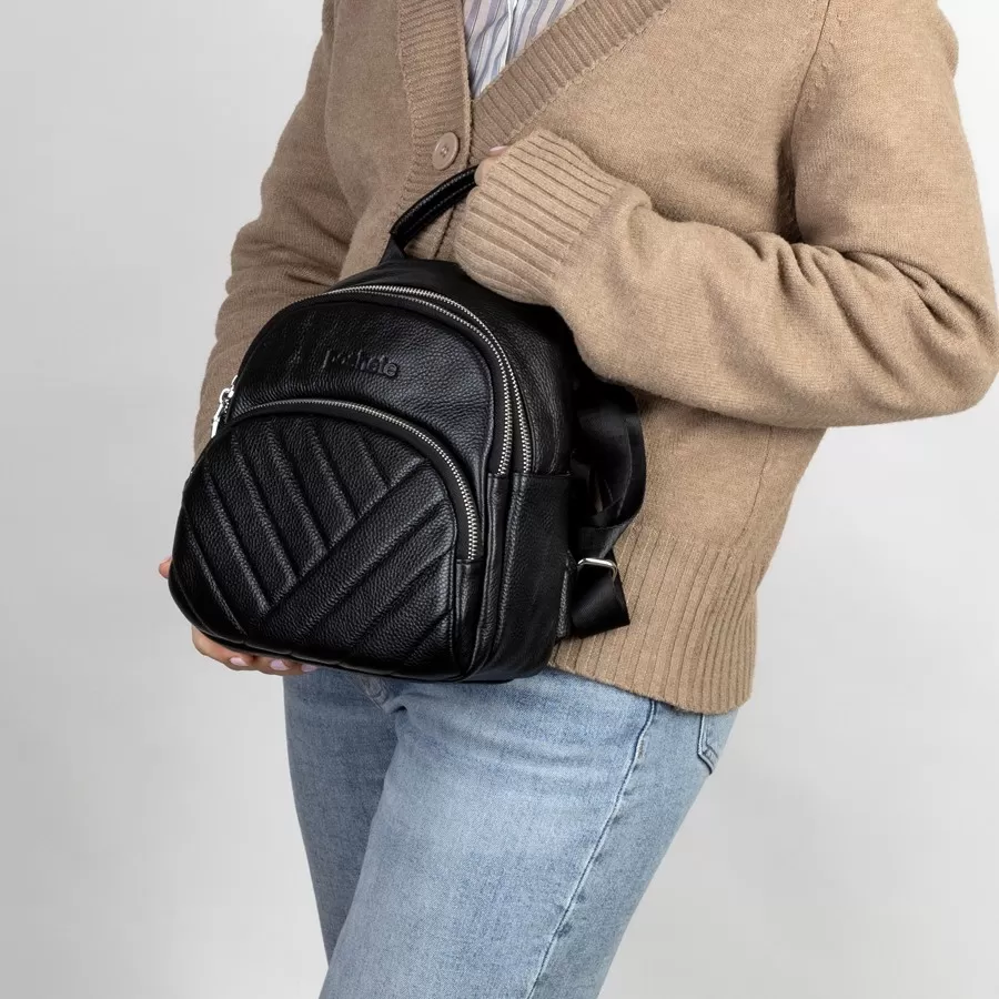 Рюкзак из натуральной кожи бренда Francesco Molinary цвета с рельефной структурой. Основное отделение закрывается на молнию. Внутри расположены два кармана, один из них на молнии. На лицевой стороне расположены 2 кармана на молниях. По бокам 2 открытых кармана. На задней части небольшой карман на молнии. Присутствует ручка для переноса, вшитая в рюкзак. Плечевые лямки регулируются по длине