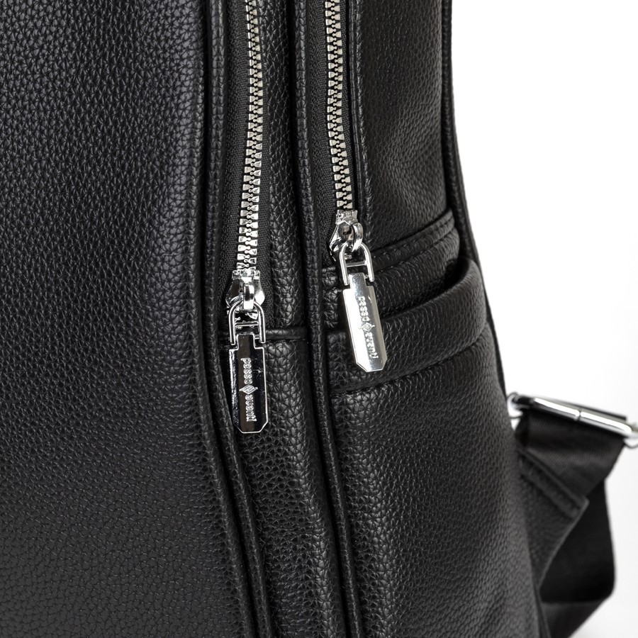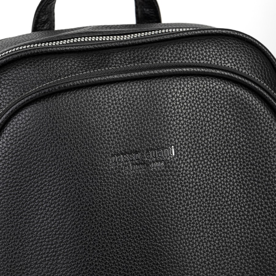 Женский рюкзак бренда Passo Avanti из натуральной кожи с зернистой структурой. Все металлические молнии имеют стильный серебряный цвет. Имеет плечевые лямки и пришитую кожаную ручку. Внутри основного отделения есть карман на молнии, отделение под ноутбук и открытый карман. На лицевой стороне есть дополнительной отделение. По бокам 2 открытых кармашка. С задней стороны есть карман на молнии