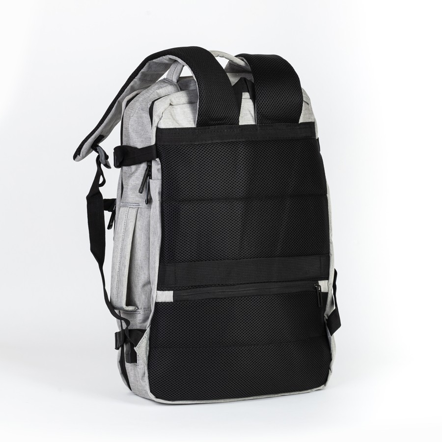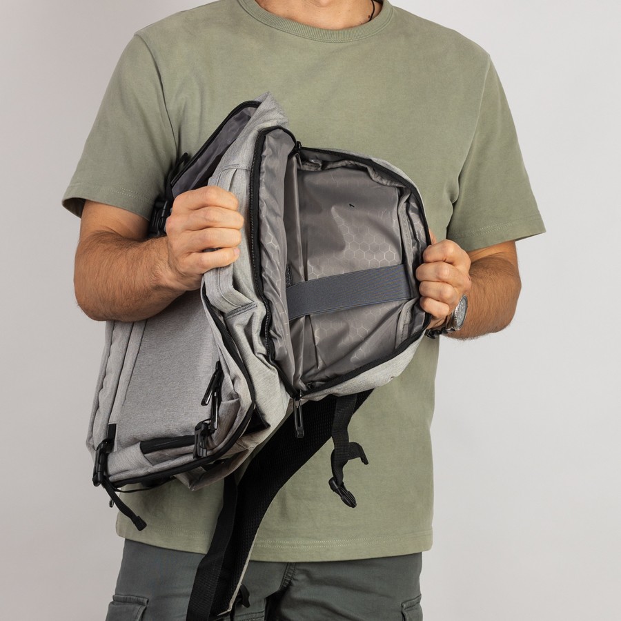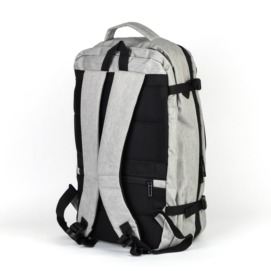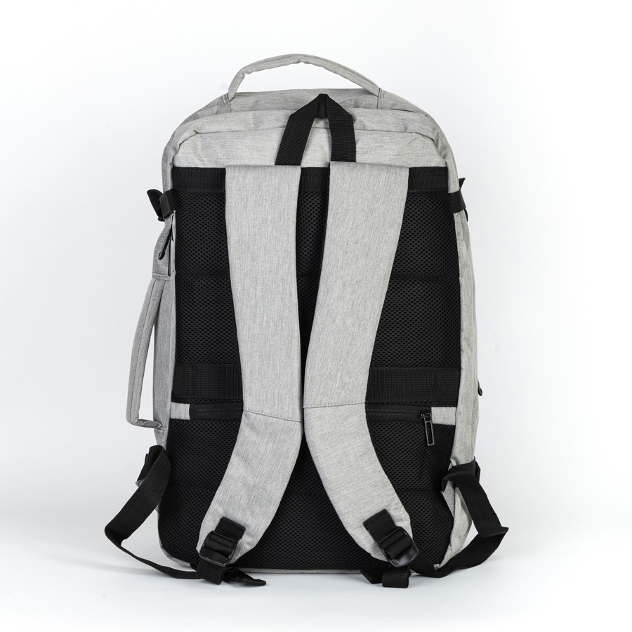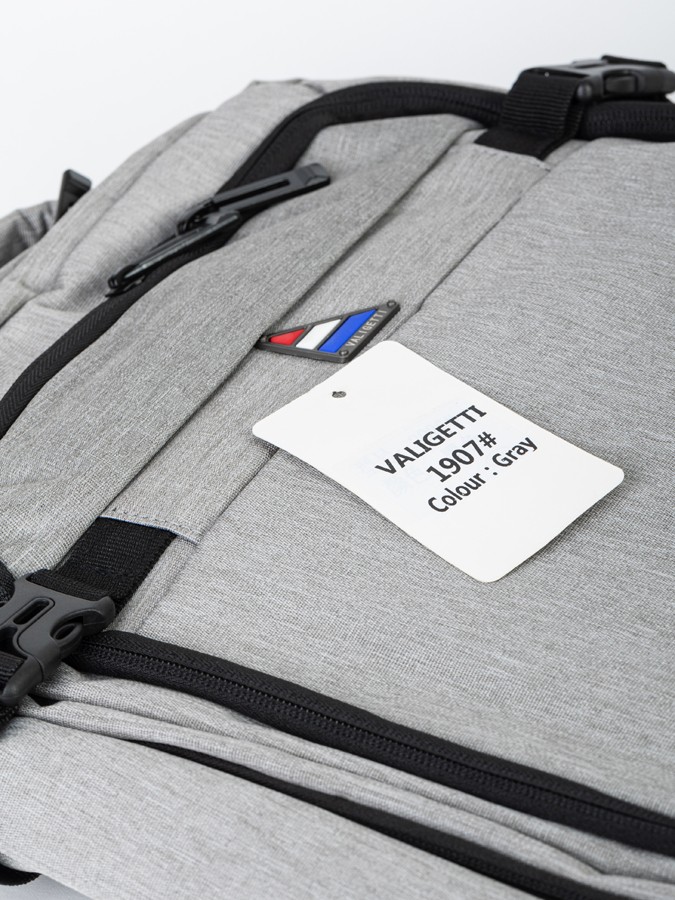 Рюкзак Color life из текстиля серого цвета. Имеет текстильные плечевые лямки и 2 вшитые текстильные ручки. Есть дышащая спинка. Прошит фирменной подкладочной тканью. Внутри основного отделения на молнии с двойным замочком есть 2 отдела и 2 кармашка для мелких вещей. Есть дополнительное отделение сзади для ноутбука и документов, а также провод USB для внешнего подключения. Спереди есть фиксаторы формы рюкзака. Сбоку имеется боковая ручка для ношения рюкзака в руке. С задней стороны есть защищенный карман на молнии и ремень фиксации на ручке чемодана