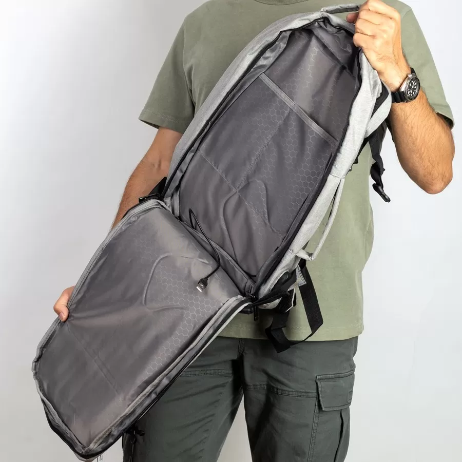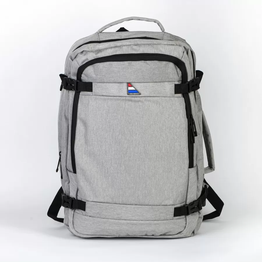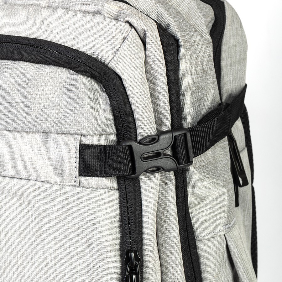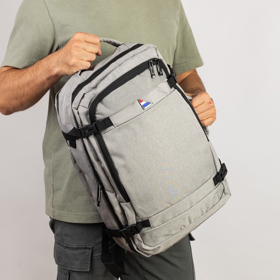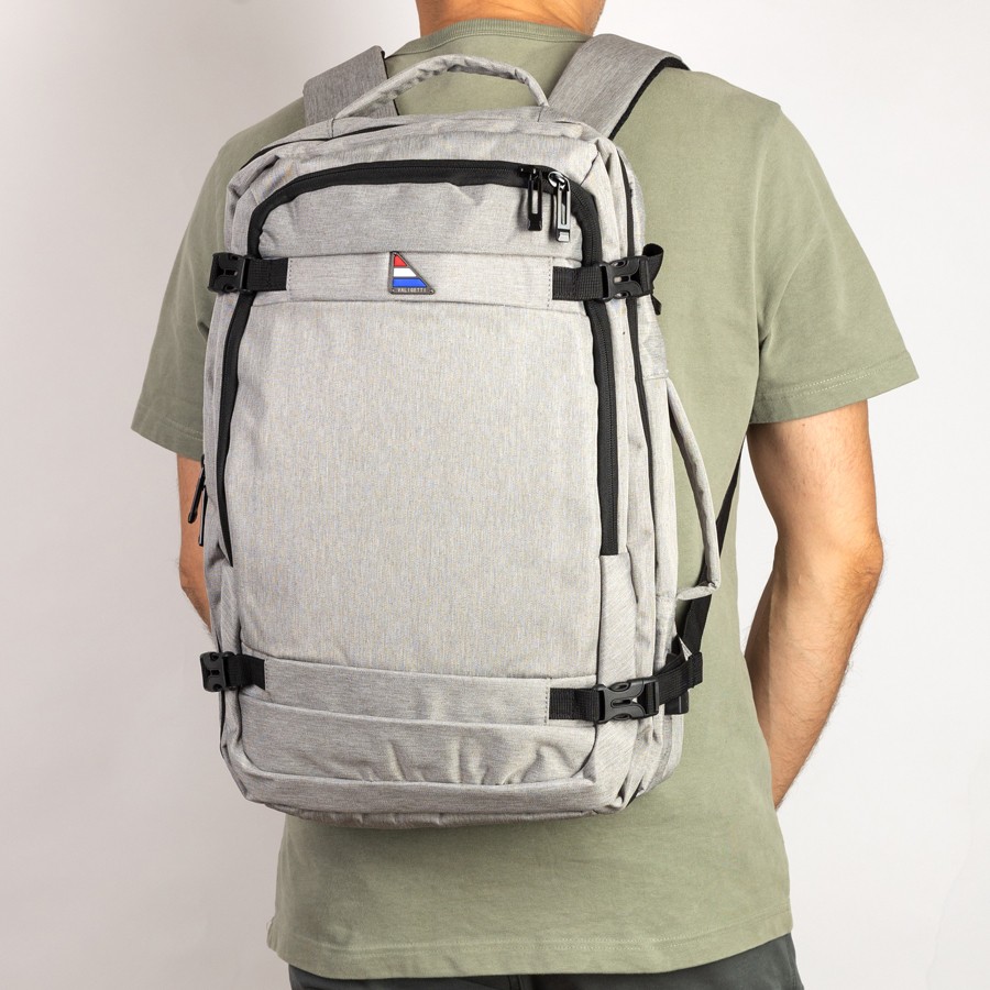 Рюкзак Color life из текстиля серого цвета. Имеет текстильные плечевые лямки и 2 вшитые текстильные ручки. Есть дышащая спинка. Прошит фирменной подкладочной тканью. Внутри основного отделения на молнии с двойным замочком есть 2 отдела и 2 кармашка для мелких вещей. Есть дополнительное отделение сзади для ноутбука и документов, а также провод USB для внешнего подключения. Спереди есть фиксаторы формы рюкзака. Сбоку имеется боковая ручка для ношения рюкзака в руке. С задней стороны есть защищенный карман на молнии и ремень фиксации на ручке чемодана