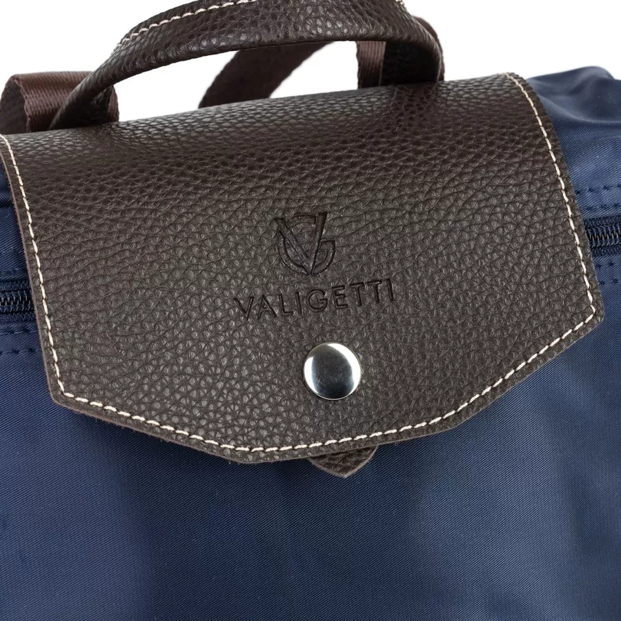Рюкзак от торговой марки Valigetti из практичного текстильного материала синего цвета. Модель с одной ручкой и регулируемыми плечевыми лямками. Отделение на молнии. Внутри карман на молнии.