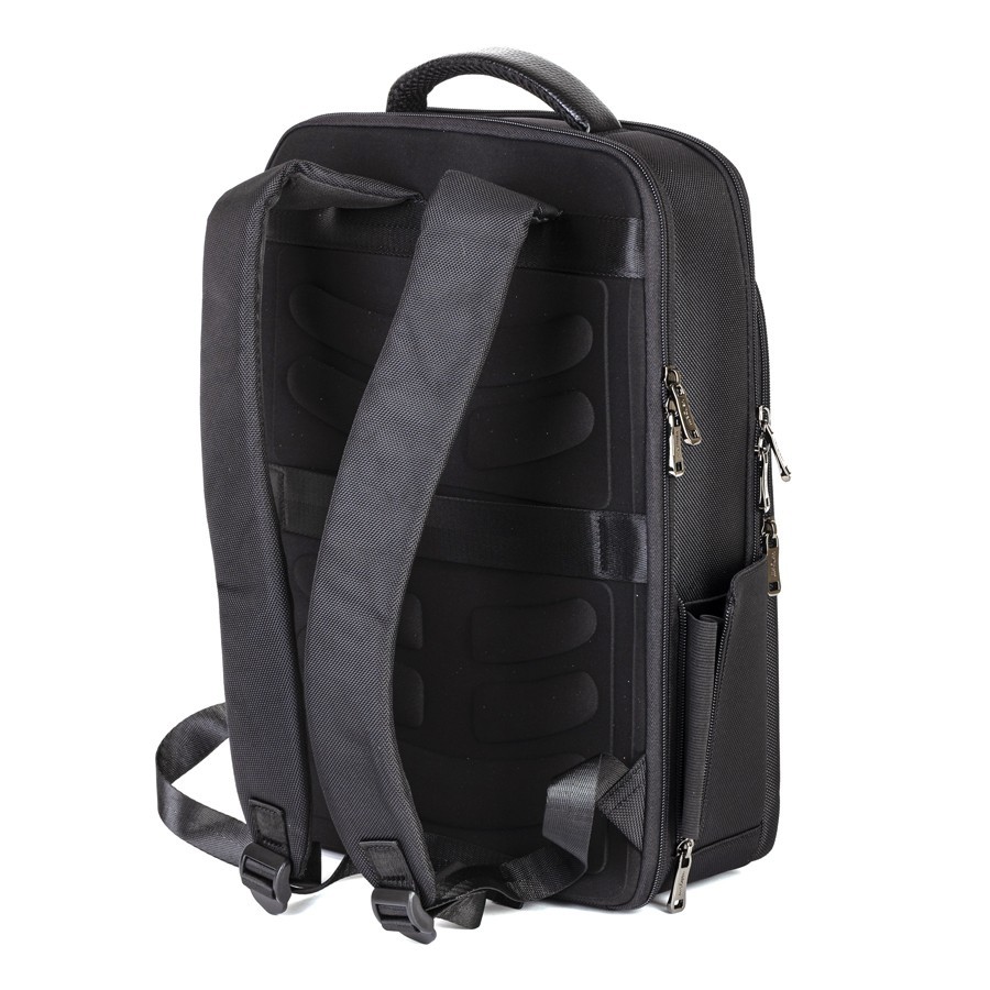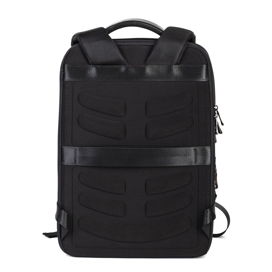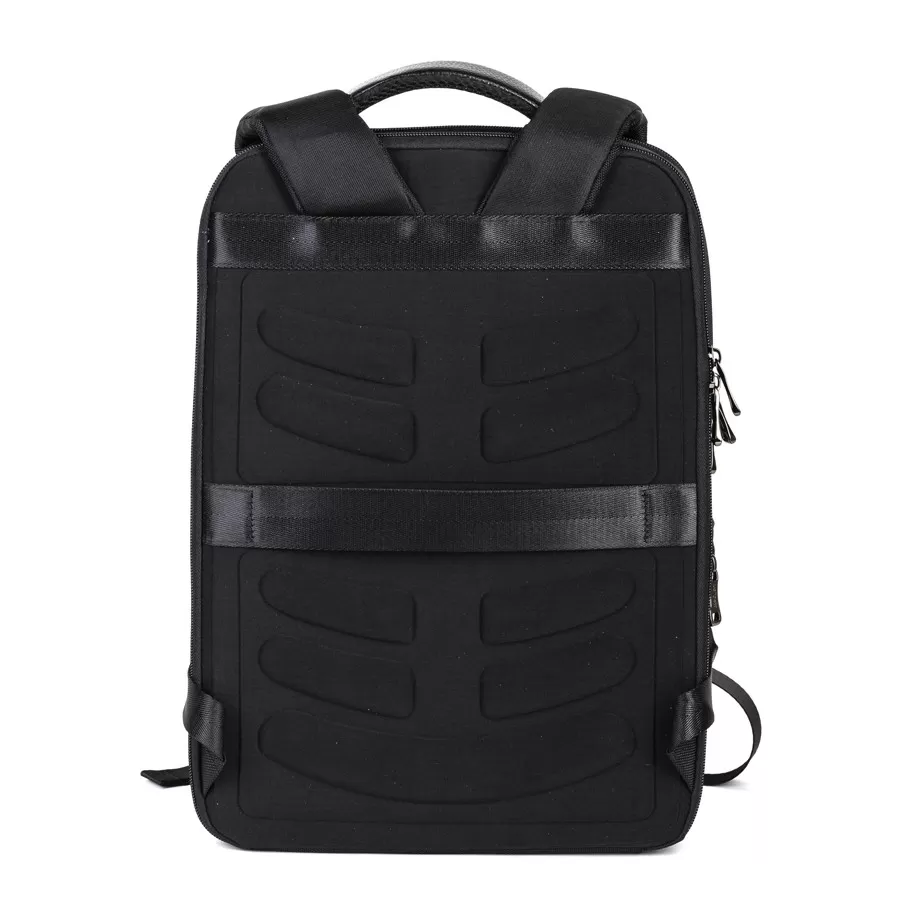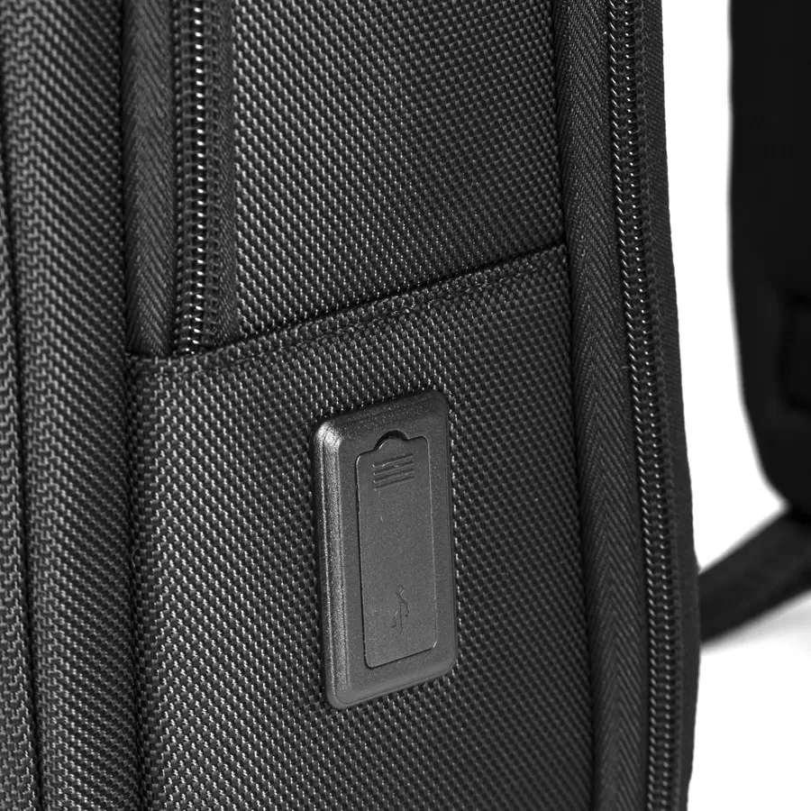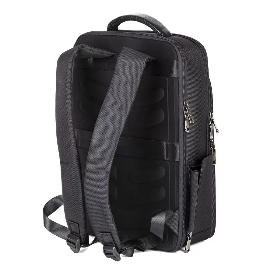 Cтильный рюкзак бренда Valigetti из натуральной кожи и текстиля черного цвета. Имеет текстильные плечевые лямки и вшитую кожаную ручку. Обладает рельефной спинкой, повторяющую форму тела. Прошит фирменной подкладочной тканью. Внутри основного отделения есть большой отсек и карман на молнии. Есть дополнительное отделение сзади, в т.ч. с отсеком для ноутбука. На лицевой стороне есть небольшое отделение и карман на молнии. Сбоку двойной открытый кармашек. Так есть USB-вход