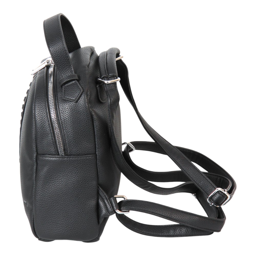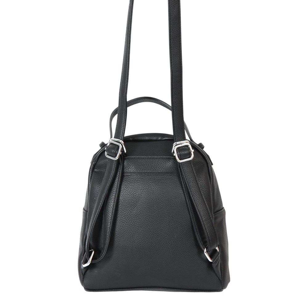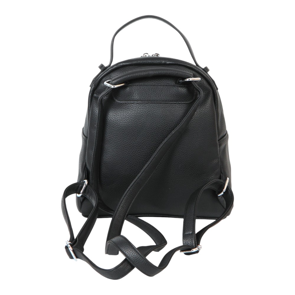 Сумка-рюкзак от Valigetti, изготовлена из искусственной кожи в черном цвете с регулируемыми лямками. Имеет одно большое отделение, прошит фирменной подкладкой. Внутри есть карман для ключей, мелких вещей и один кармашек на молнии.