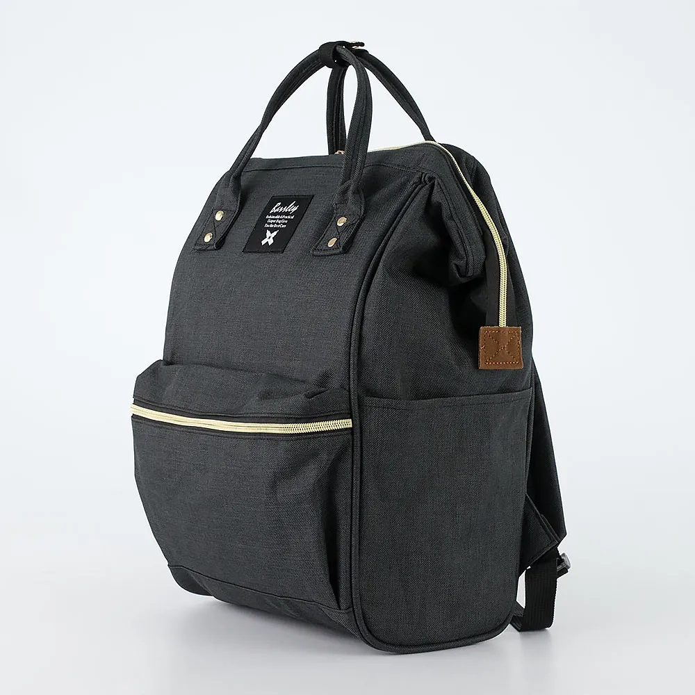 Рюкзак для мам от Barrley Prince черного цвета выполнен из качественного и практичного текстильного материала. Рюкзак очень вместите лен, при своих небольших размерах. Спереди карман на молнии, по бокам два кармана без застежек для мелочей. На задней стенке рюкзака расположена молния, открыв которую можно достать вещи со дна рюкзака, не открывая его. Основное отделение на молнии, широко открывается за счет металлических вставок, что обеспечивает доступ к любому уголку рюкзака. Внутри рюкзака два кармана для мелочей. Модель имеет две ручки для переноски и две регулируемые плечевые лямки.