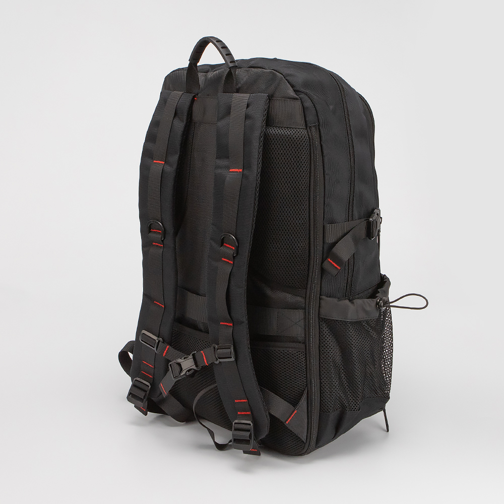 Функциональный рюкзак от торговой марки Francesco Molinary из прочного износостойкого текстильного материала черного цвета. Модель большого размера с лямкой-переноской с прорезиненной накладкой, плотными широкими регулируемыми плечевыми лямками с ремнями для крепления и нагрудным фиксатором для распределения нагрузки. Спинка с дышащими вставками; имеется лямка для крепления на выдвижную ручку чемодана. Глубокое отделение на молнии. Внутри: фирменная подкладка, накладной карман с уплотненной стенкой для ноутбука, USB-кабель для внешнего портативного аккумулятора Power Bank, при подключении которого можно подзаряжать гаджеты через USB-порт, расположенный снаружи сбоку. По бокам – стягивающие ремни, карман-сетка на резинке. На лицевой стороне – два накладных кармана, вместительное отделение с органайзером для канцелярских принадлежностей; снизу карман на молнии, представляющий собой непромокаемое вентилируемое отделение для обуви (снаружи на нем имеется лямка для крепления). На задней стороне – раздвижка на молнии для увеличения объема. Рюкзак идеален для поездок и путешествий.