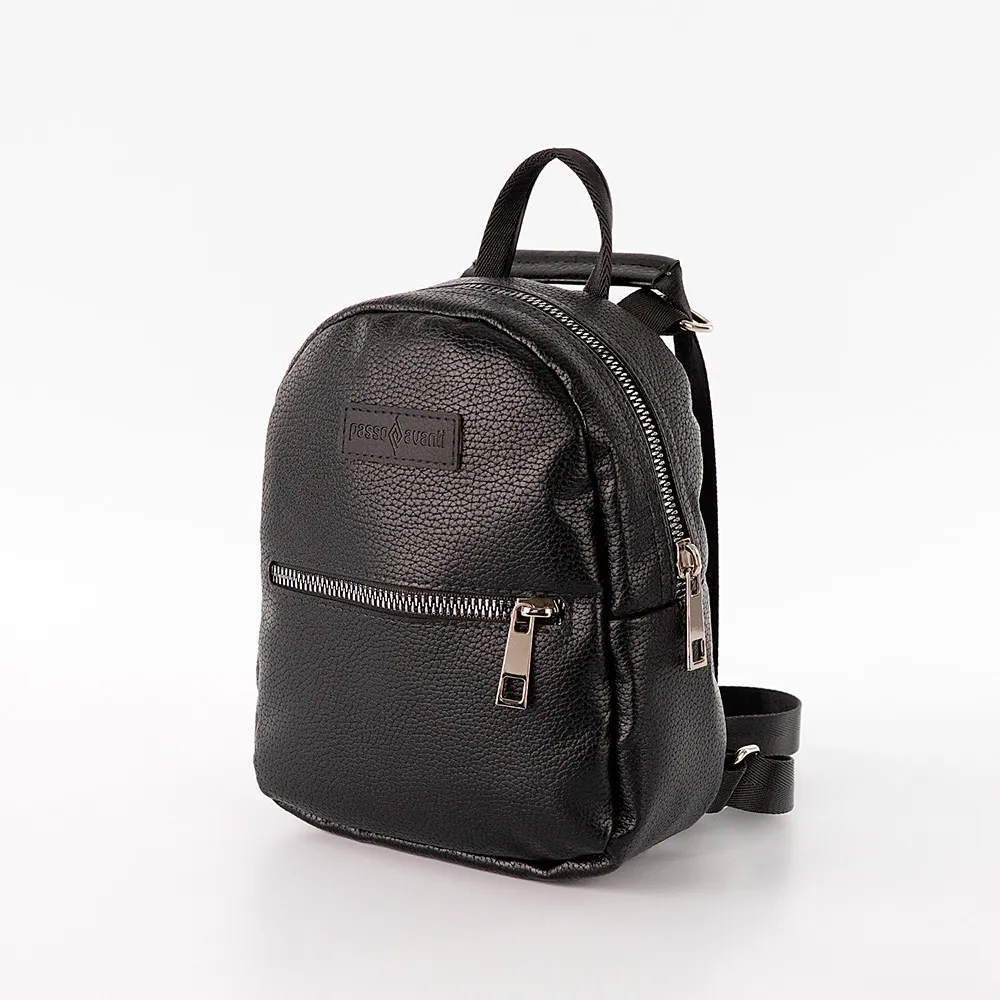 Сумка-рюкзак от торговой марки Passo Avanti из искусственной кожи черного цвета. Компактная модель с лямкой-переноской и плечевыми лямками, которые стягиваются в плечевой ремень. Отделение на молнии. Внутри: накладной карман. На лицевой и задней сторонах – карман на молнии.