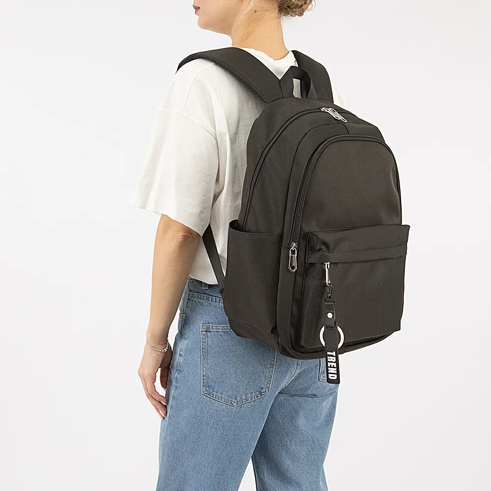 Рюкзак от торговой марки Ecotope из текстильного материала черного цвета. Вместительная модель с лямкой-переноской и регулируемыми плечевыми лямками. Два отделения на молнии, с текстильной подкладкой. В основном отделении: накладной карман с уплотненной стенкой. На лицевой стороне – накладной карман на молнии с оригинальным пуллером. На спинке – карман-антивор на молнии. По бокам – вместительный накладной карман.