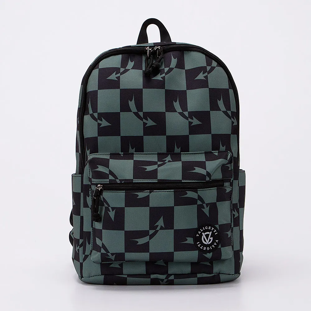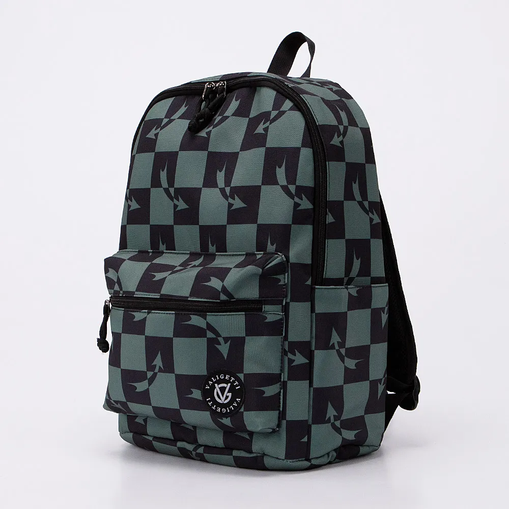 Рюкзак от торговой марки Valigetti из текстильного материала. Декорирован оригинальным принтом со стрелками. Вместительная модель с лямкой-переноской, широкими плотными регулируемыми плечевыми лямками. Отделение на молнии. Внутри: текстильная подкладка, три накладных кармана. На лицевой стороне – накладной карман на молнии. На спинке – карман-антивор на молнии, лямка для крепления на выдвижную ручку чемодана. По бокам – накладной карман.