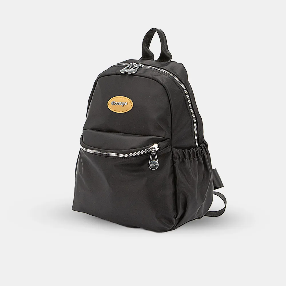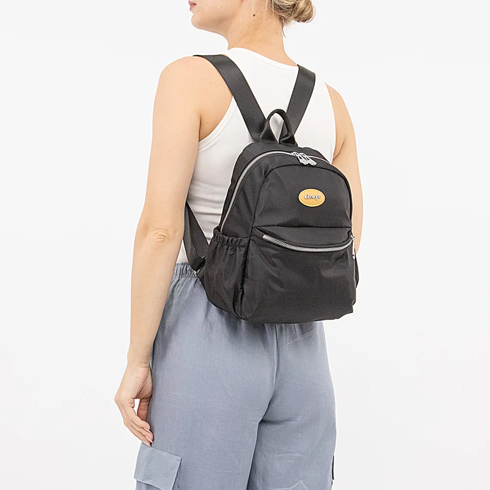Рюкзак от торговой марки Ecotope из практичного текстильного материала черного цвета. Модель с лямкой-переноской и регулируемыми плечевыми лямками. Отделение на молнии. Внутри: текстильная подкладка, карман на молнии, перегородка с карманом на молнии, образующая накладной карман. По бокам – накладной карман на резинке. На лицевой и задней сторонах – карман на молнии.