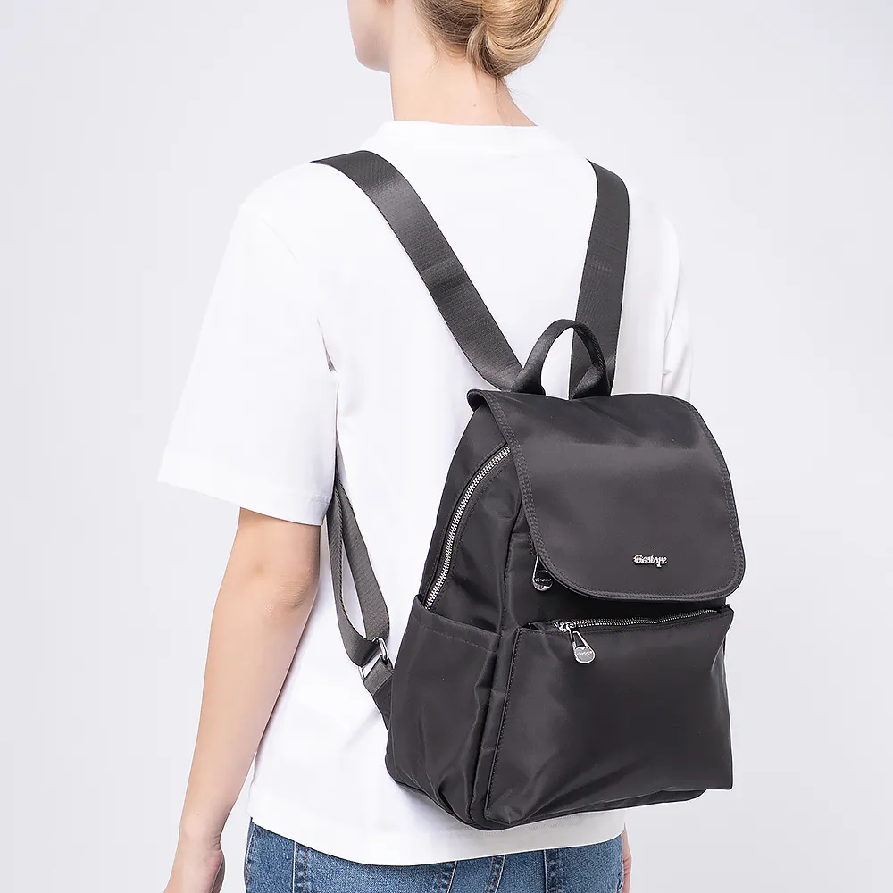 Рюкзак от торговой марки Ecotope выполнен из текстильного материала черного цвета. Модель с лямкой для переноски и регулируемыми плечевыми ремнями. Клапан на магнитной кнопке закрывает отделение на молнии. Внутри: текстильная подкладка, два кармана на молнии. С лицевой и задней стороны - карман на молнии. По бокам - накладные карманы без застежки.