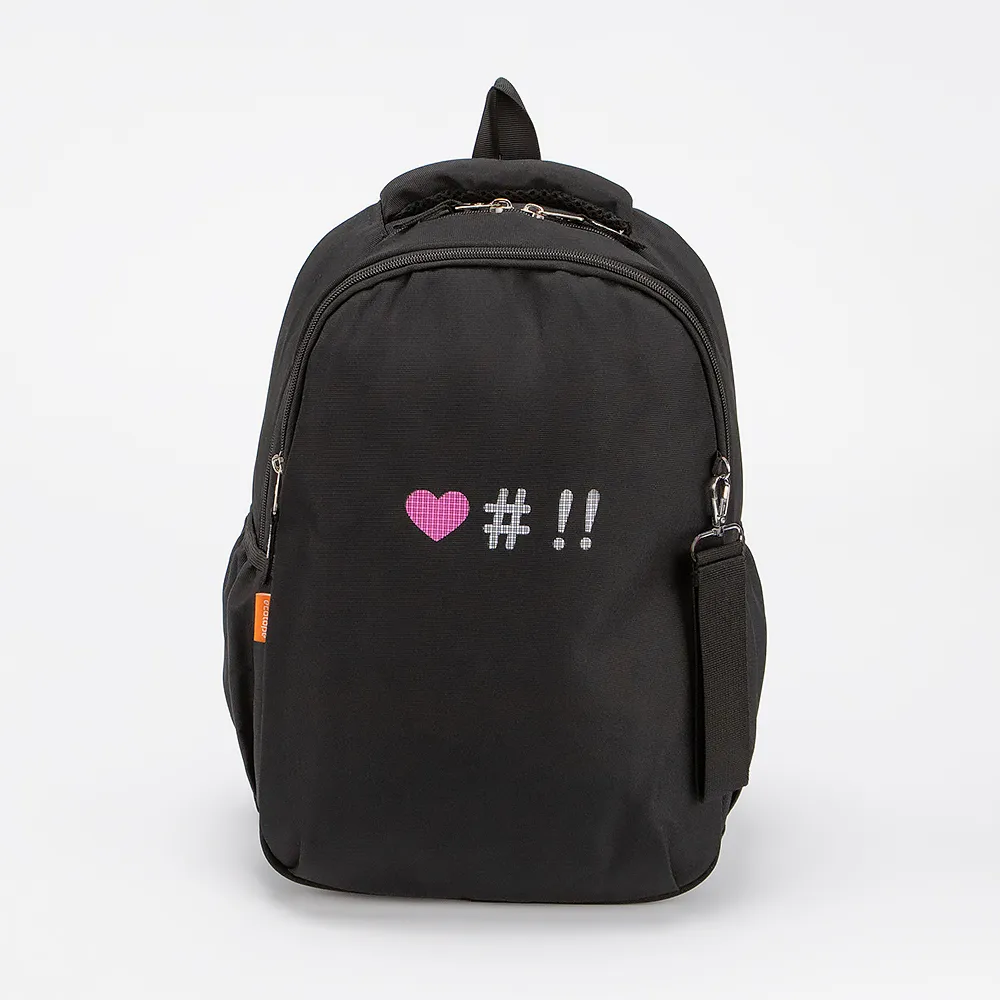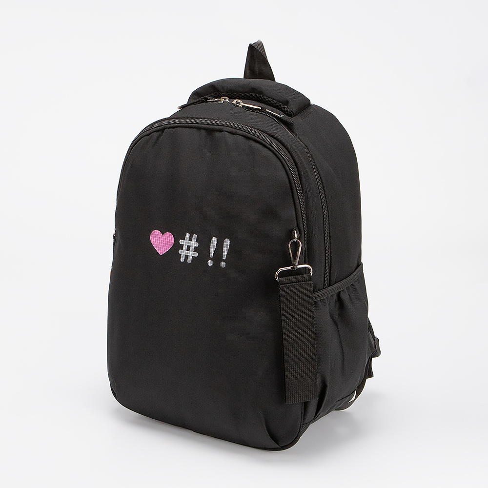 Рюкзак от торговой марки Ecotope из текстильного материала черного цвета с рисунком. Модель с лямкой, плотной ручкой для переноски и регулируемыми плечевыми ремнями, дополнительно фиксирующимися на груди ремнями с застежкой фастекс. Два отделения на молнии. Сбоку - накладной карман без застежки.