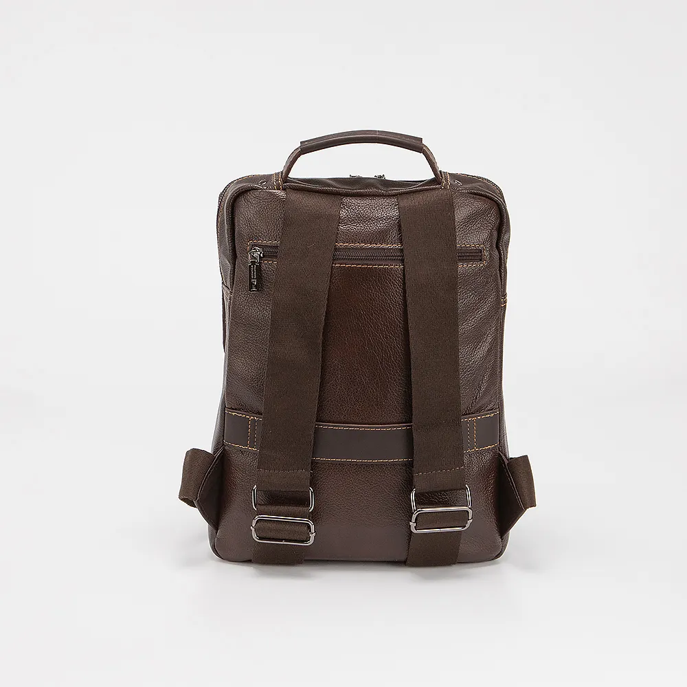 Рюкзак от торговой марки Francesco Molinary выполнен из натуральной кожи коричневого цвета. Модель с ручкой для переноски и широкими регулируемыми плечевыми ремнями. Отделение на молнии. Внутри: текстильная подкладка, карман для ноутбука. С лицевой стороны - карман на молнии, спрятанный под клапан. С задней стороны - карман на молнии и лямка для крепления на выдвижную ручку чемодана.
