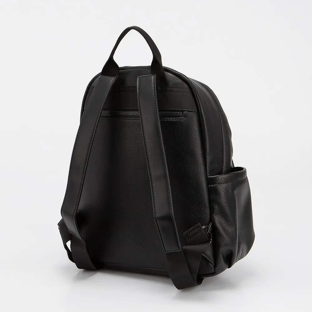 Рюкзак от торговой марки David Jones выполнен из искусственной кожи черного цвета. Модель с лямкой для переноски и регулируемыми плечевыми ремнями. Отделение на молнии. Внутри: текстильная подкладка, карман на молнии, накладной карман. На лицевой стороне - карман на молнии и карман на магнитной кнопке. По бокам - карман без застежки. На задней стороне - карман на молнии.