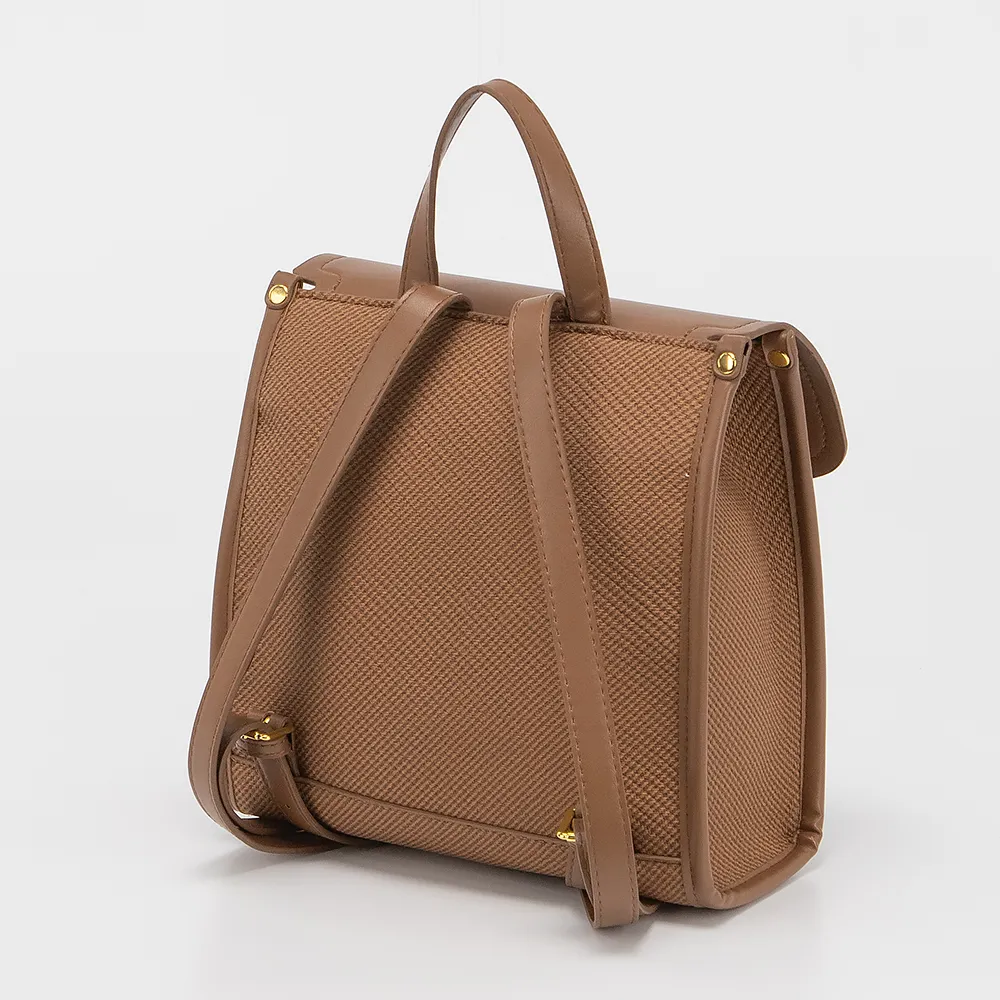 Рюкзак от торговой марки Valigetti выполнен из искусственной кожи и текстильного материала коричневого цвета. Модель с ручкой и двумя регулируемыми плечевыми лямками. Клапан закрывает отделение на молнии и накладной карман. Внутри: текстильная подкладка.