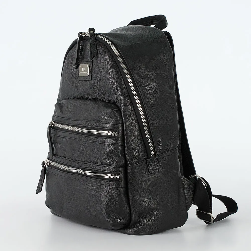 Вместительный мужской рюкзак Francesco Molinary из натуральной кожи с естественной фактурой. Один основной, объёмный отсек на металл ической молнии. Внутри два отсека, куда войдут ноутбук и планшет, два стандартных кармашка для телефона и один на молнии. Спереди два удобных кармана на металлической молнии. Широкие крепкие кожаные лямки с текстильными вставками и удобная текстильная ручка с кожаной вставкой сверху. Задняя стенка выполнена из мягкого уплотнённого текстиля.