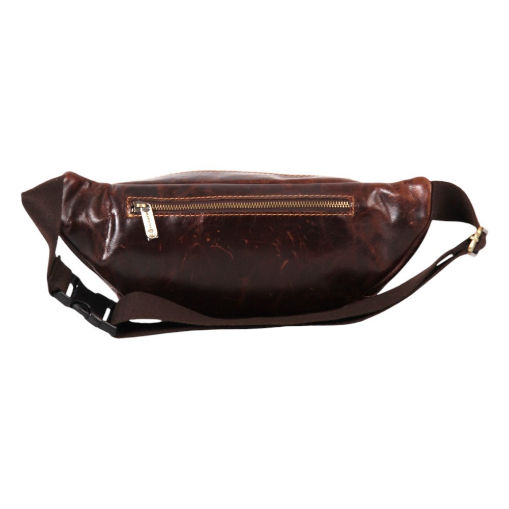 Сумка на пояс от бренда Valigetti из натуральной кожи коричневого цвета. Модель с несъемным регулируемым поясным ремнем с застежкой фастекс. Отделение на молнии. Внутри: текстильная подкладка, карман на молнии. На лицевой стороне – карман на скрытой молнии. На задней стороне – карман на молнии.