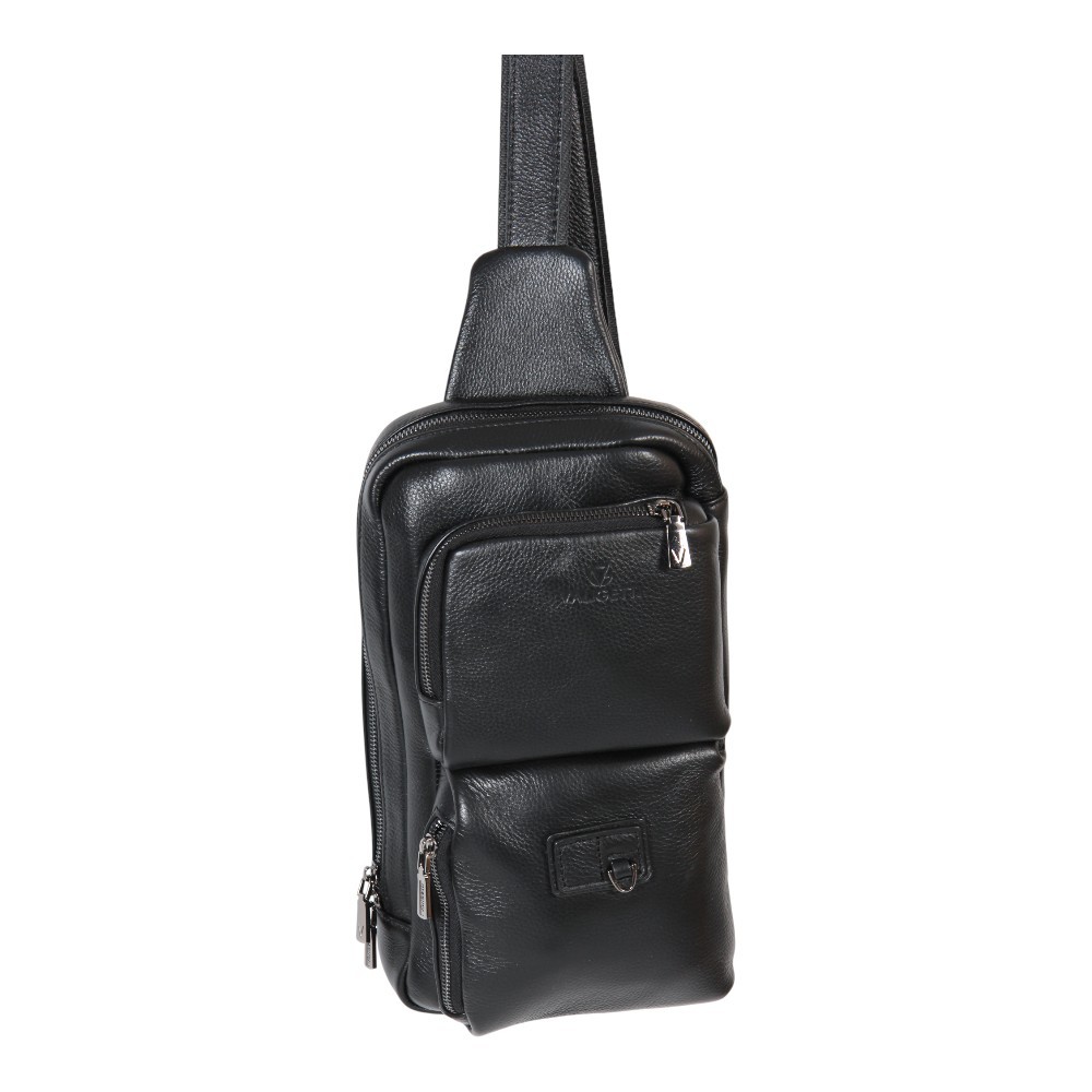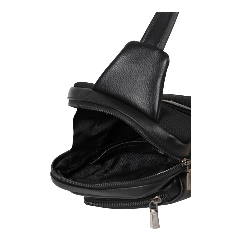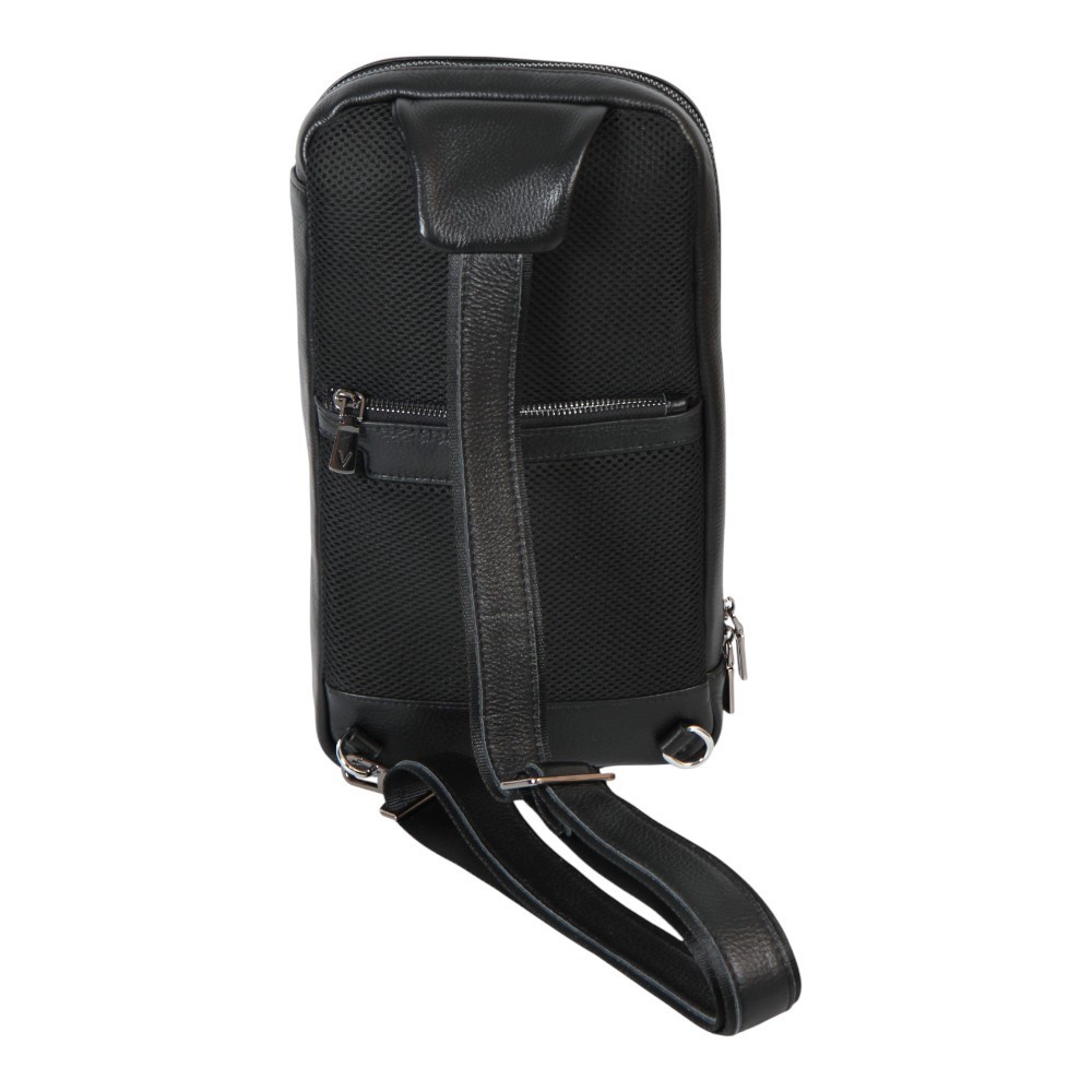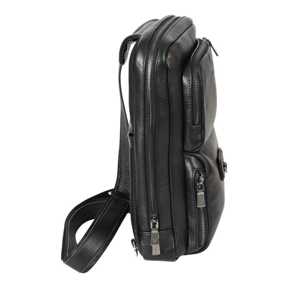 Однолямочный рюкзак от Valigetti черного цвета из натуральной кожи. Основное отделение на молнии. Внутри 1 отделение, карман на молнии и открытый карман. На лицевой стороне 2 внешних кармана на молнии. На задней стороне карман для быстрого доступа на молнии.