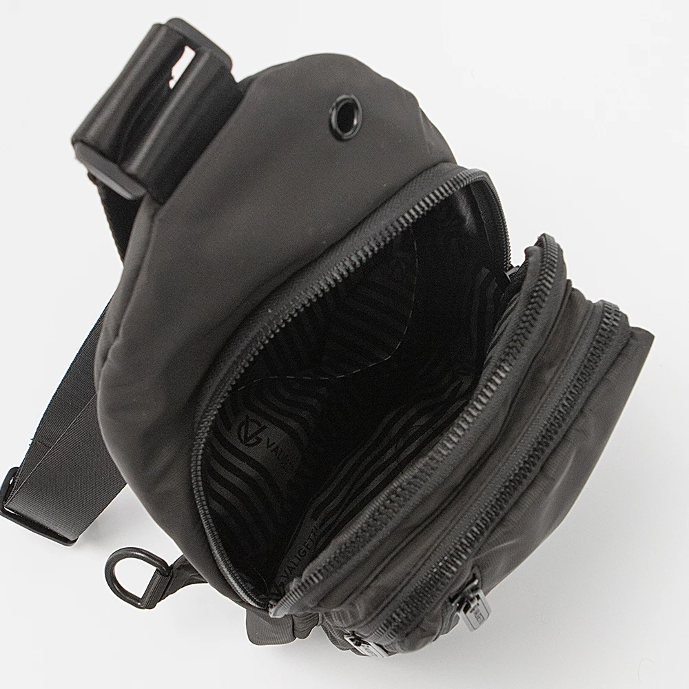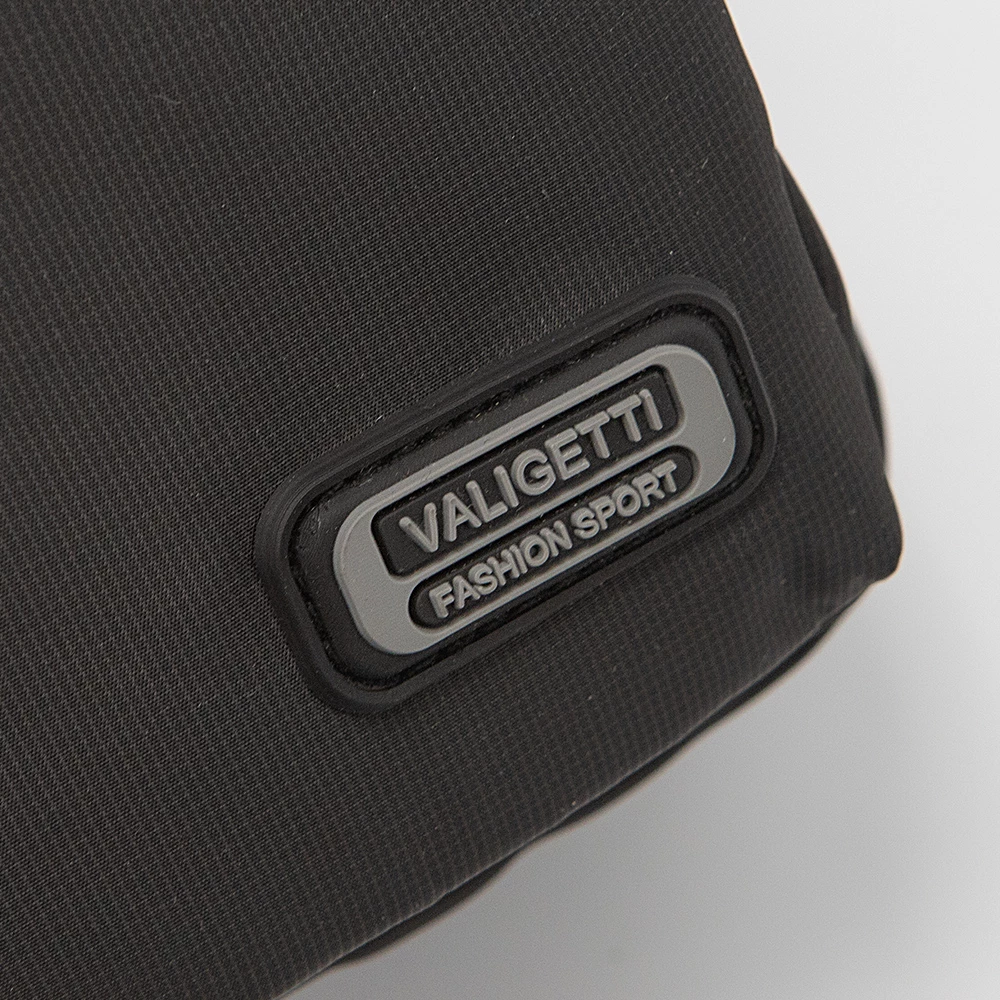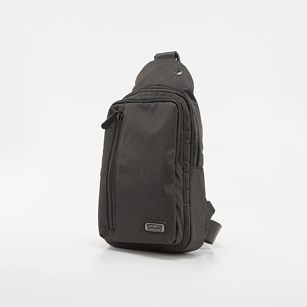 Однолямочный рюкзак от бренда Valigetti из прочного практичного текстильного материала черного цвета с принтом в мелкую клетку. Модель с регулируемой плечевой лямкой с карабином, благодаря чему рюкзак можно носить как на правом, так и на левом плече. Отделение на молнии. Внутри: текстильная подкладка, накладной карман. На лицевой стороне – два кармана на молнии. На задней стороне – карман на молнии.