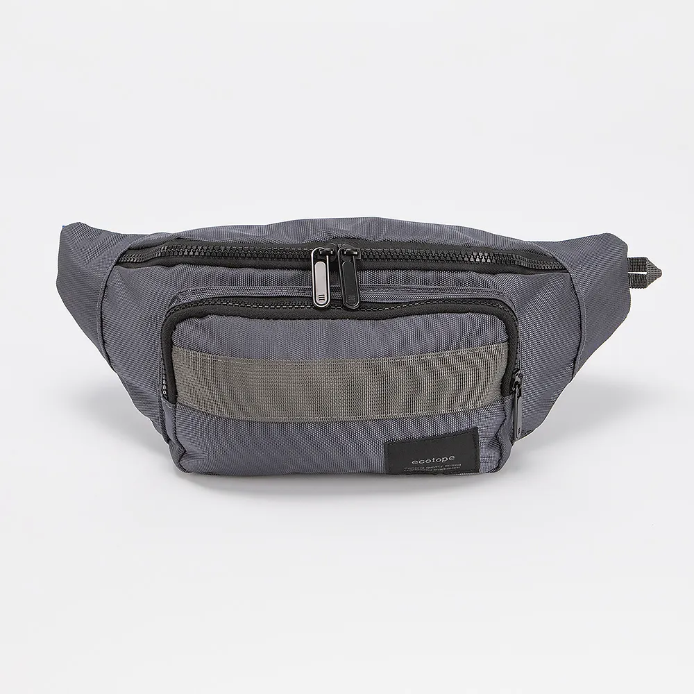 Сумка на пояс от торговой марки Ecotope из текстильного материала серого цвета. Вместительная модель с регулируемым поясным ремнем на застежке фастекс. Отделение на молнии. Внутри: текстильная подкладка. На лицевой стороне - накладной карман на молнии. На задней стороне - карман на молнии.