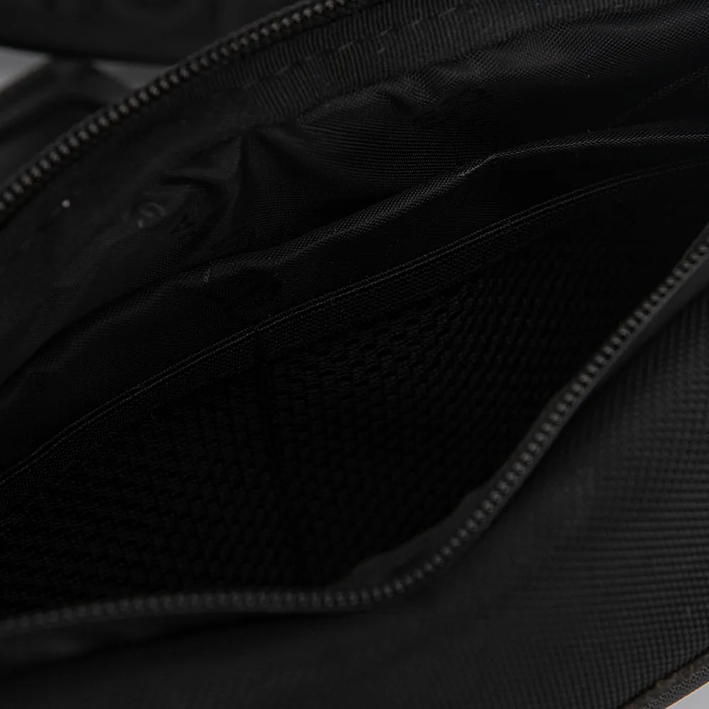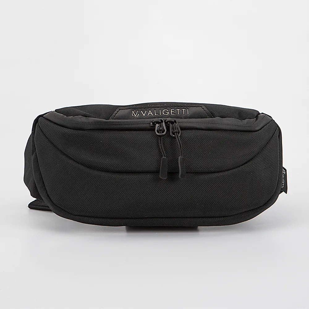 Сумка на пояс от торговой марки Valigetti из прочной текстильной ткани черного цвета. Модель с регулируемым поясным ремнем. Два отделения на молнии, с текстильной подкладкой. В переднем отделении – карман на молнии. В заднем – четыре кармана-сетки, накладной карман с уплотненной стенкой. На задней стороне с дышащим сетчатым слоем – карман на молнии.