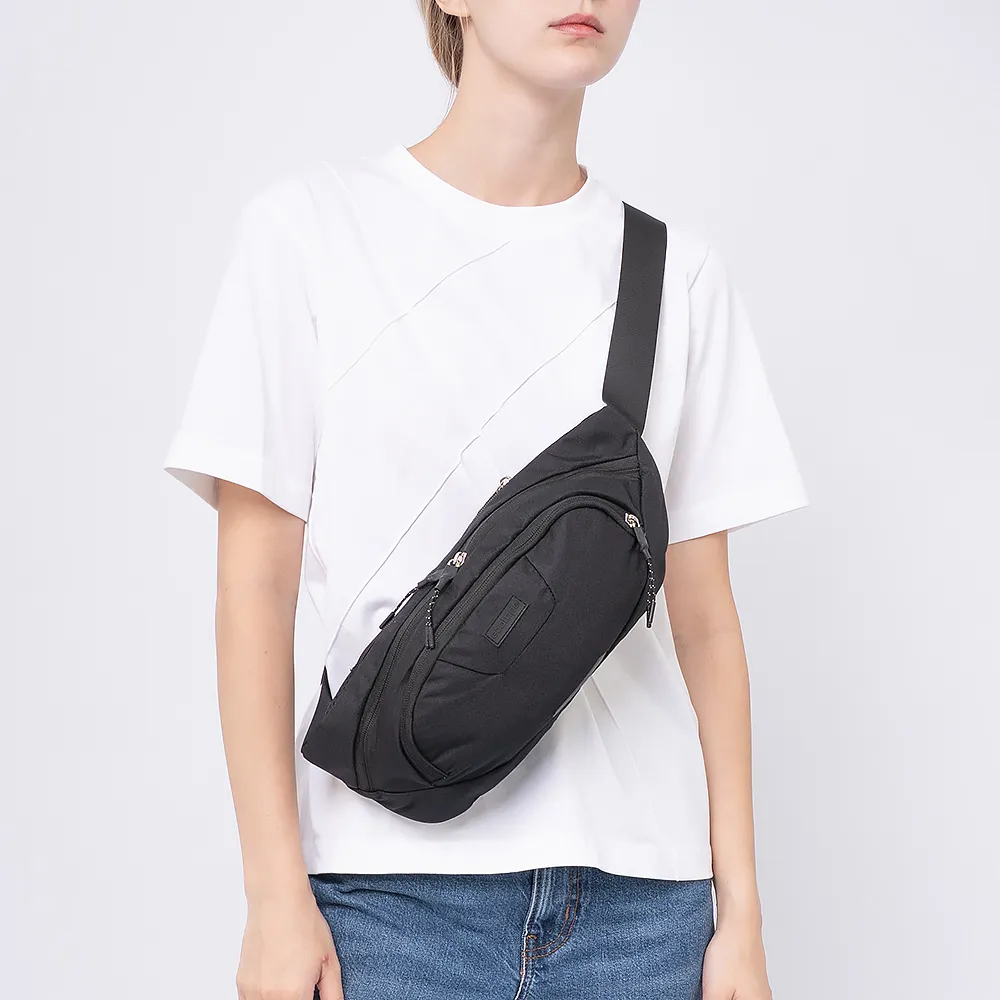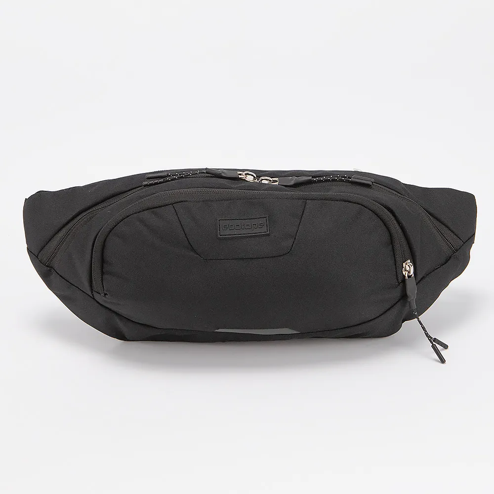 Сумка на пояс от торговой марки Ecotope из текстильного материала синего цвета. Вместительная модель с регулируемым поясным ремнем на застежке фастекс. Отделение на молнии. Внутри: текстильная подкладка, карман на молнии. На лицевой и задней стороне - карман на молнии. Задняя сторона с верхним дышащим сетчатым слоем.