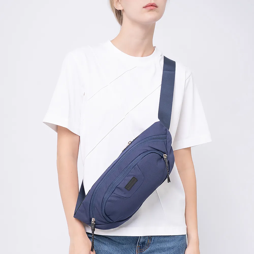 Сумка на пояс от торговой марки Ecotope из текстильного материала синего цвета. Вместительная модель с регулируемым поясным ремнем на застежке фастекс. Отделение на молнии. Внутри: текстильная подкладка, карман на молнии. На лицевой и задней стороне - карман на молнии. Задняя сторона с верхним дышащим сетчатым слоем.