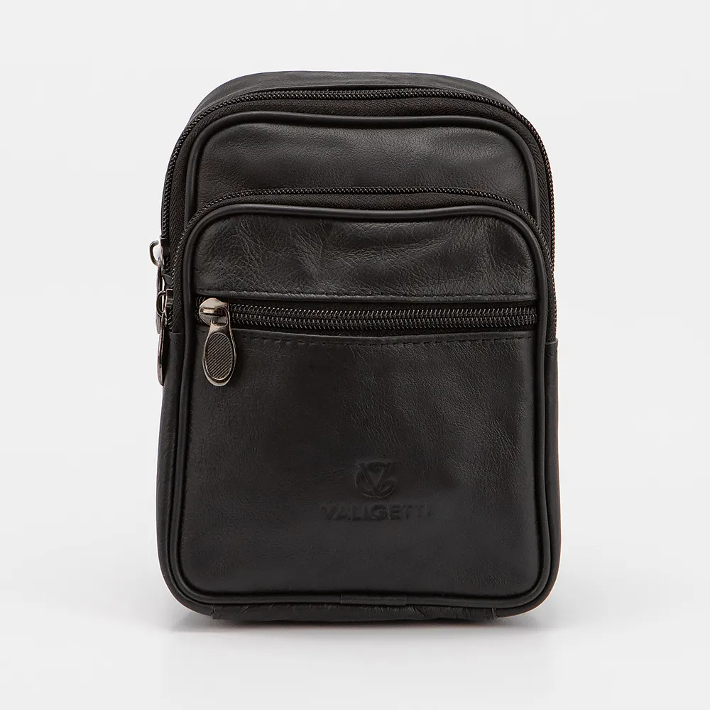 Однолямочный рюкзак от торговой марки Valigetti выполнен из натуральной кожи черного цвета. Модель с широкой регулируемой плечевой лямкой. Отделение на молнии. С лицевой стороны - два кармана на молнии. С задней стороны - карман на молнии.