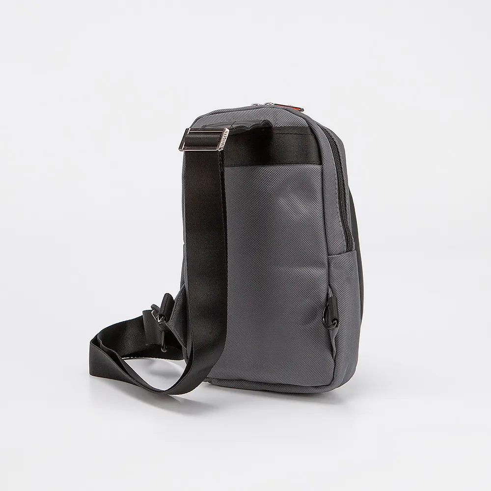 Однолямочный рюкзак от торговой марки Valigetti выполнен из плотного текстильного материала серого цвета. Модель с широкой регулируемой плечевой лямкой . Отделение на молнии. Внутри: накладной карман, карман на молнии. На лицевой стороне - два вертикальных кармана на молнии.