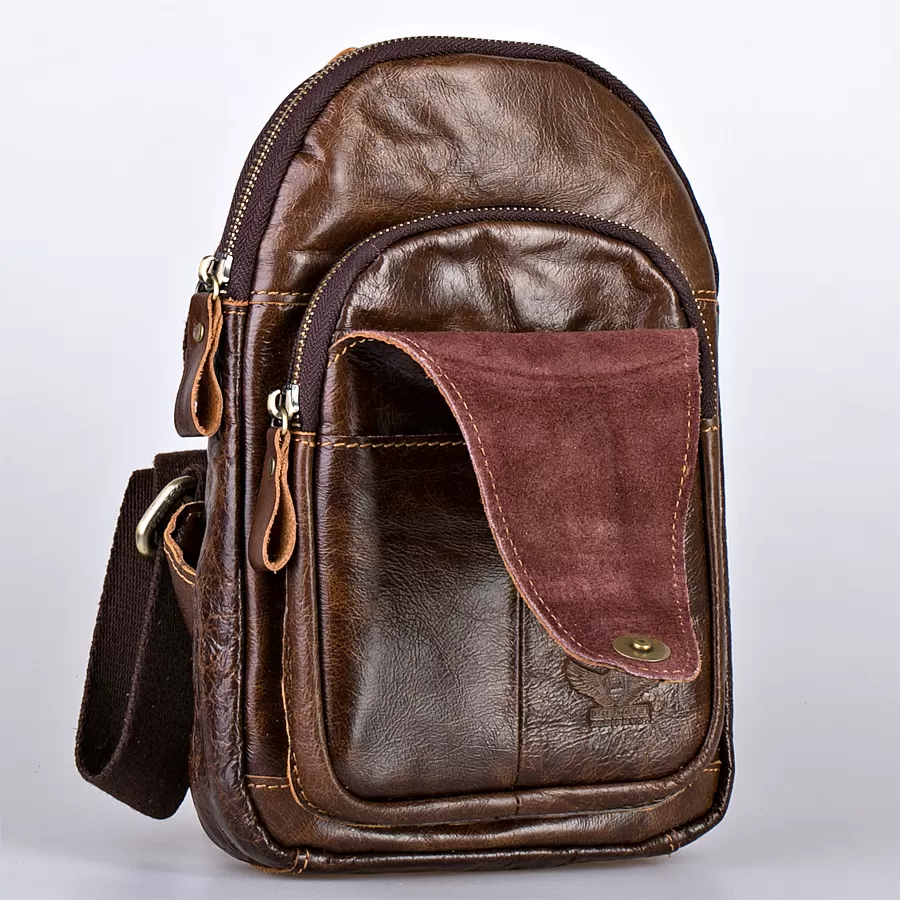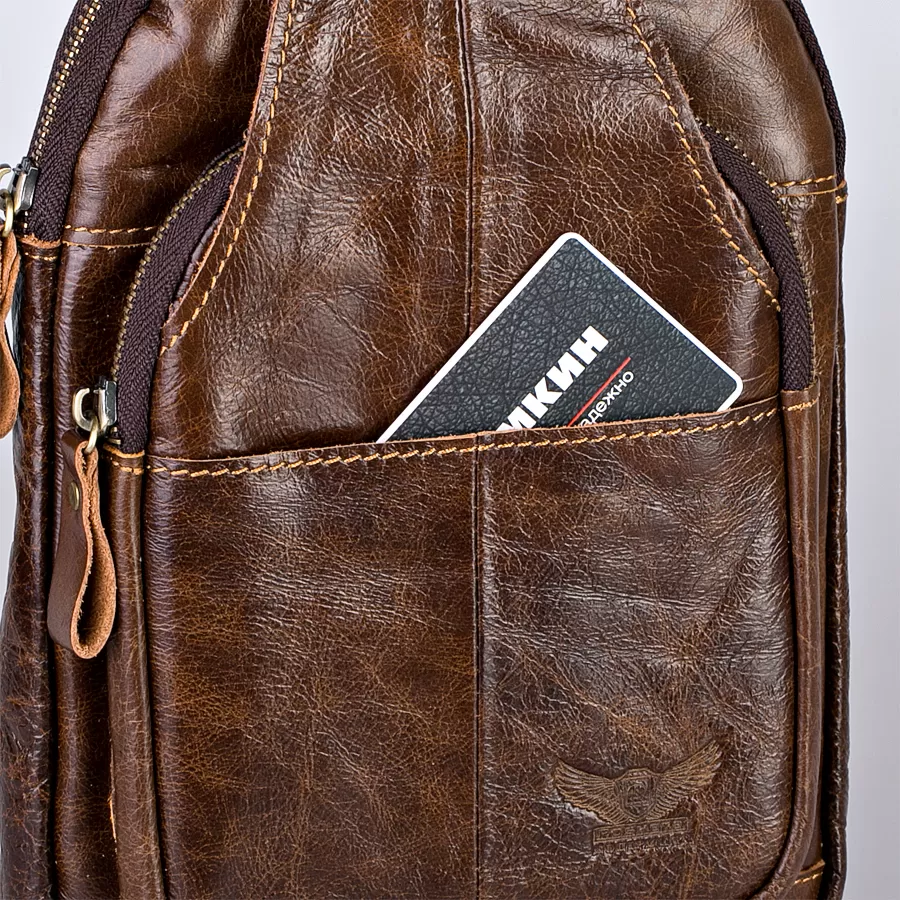 - Мужской компактный из на натуральной кожи рюкзак бренда Poshete