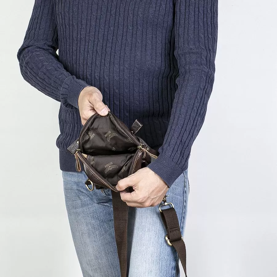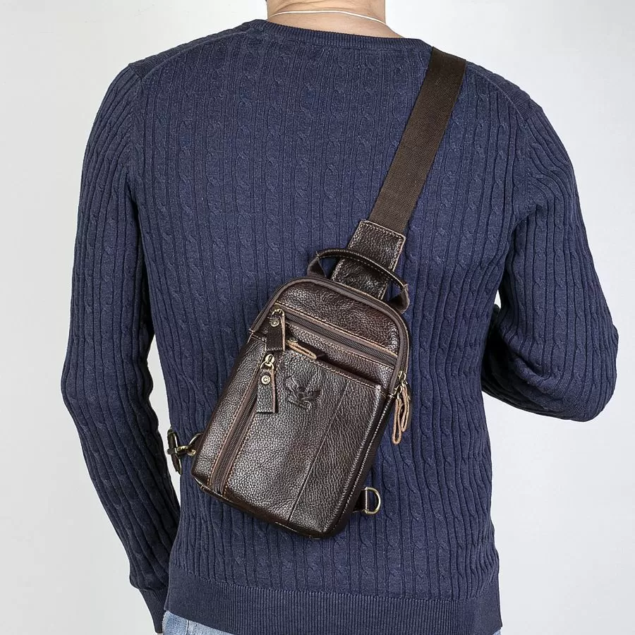 Мужская плечевая сумка из качественной натуральной кожи бренда Poshete;