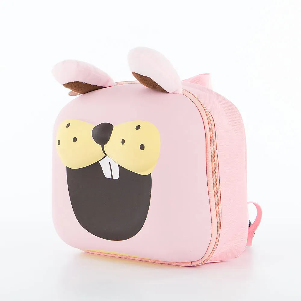 Детский рюкзак от торговой марки Ecotope из текстильного материала розового цвета в виде бобра с формованной лицевой панелью. Модель с лямкой-переноской, регулируемыми плечевыми лямками. Отделение на молнии. Внутри: текстильная подкладка, накладной карман-сетка. Спинка с дышащим сетчатым верхним слоем.