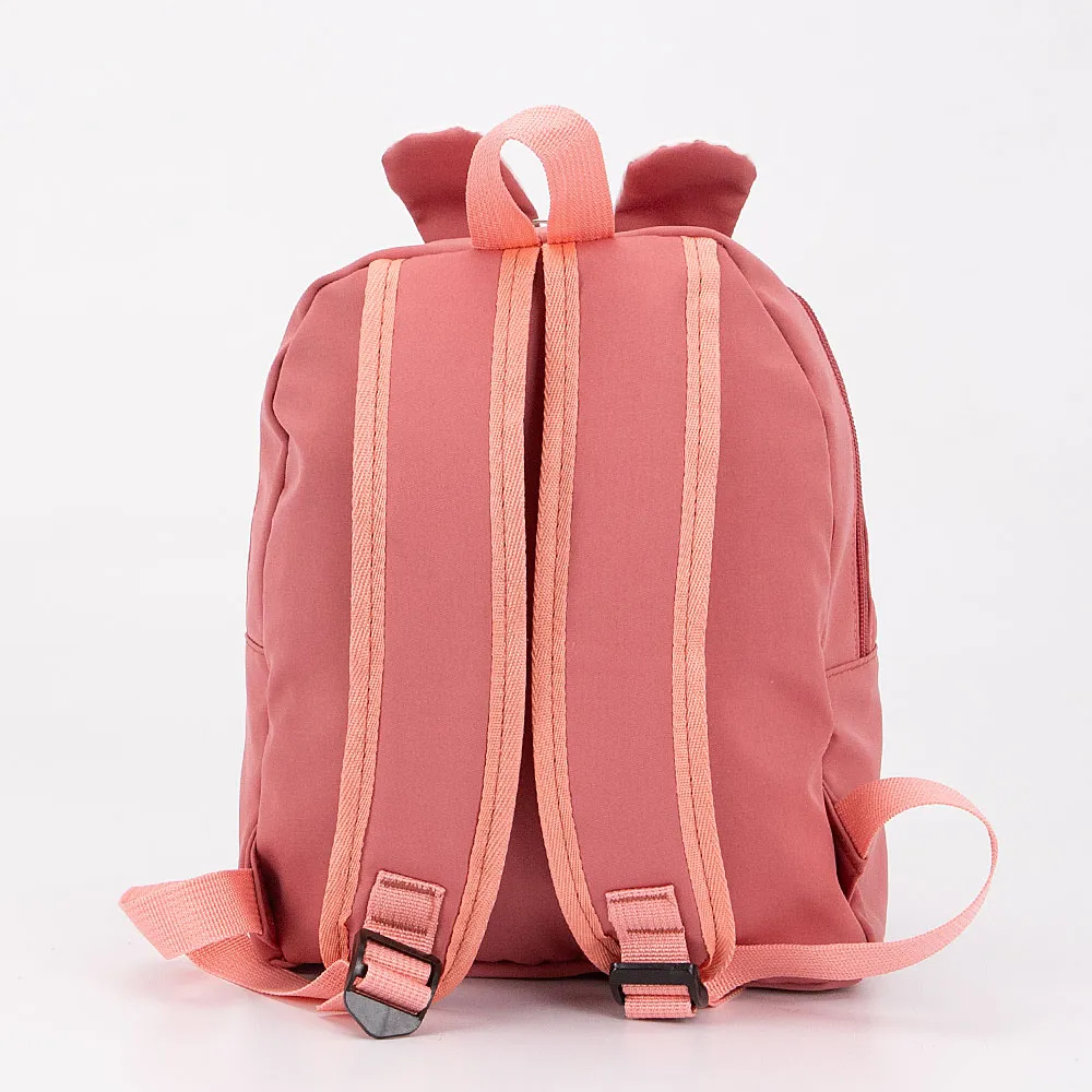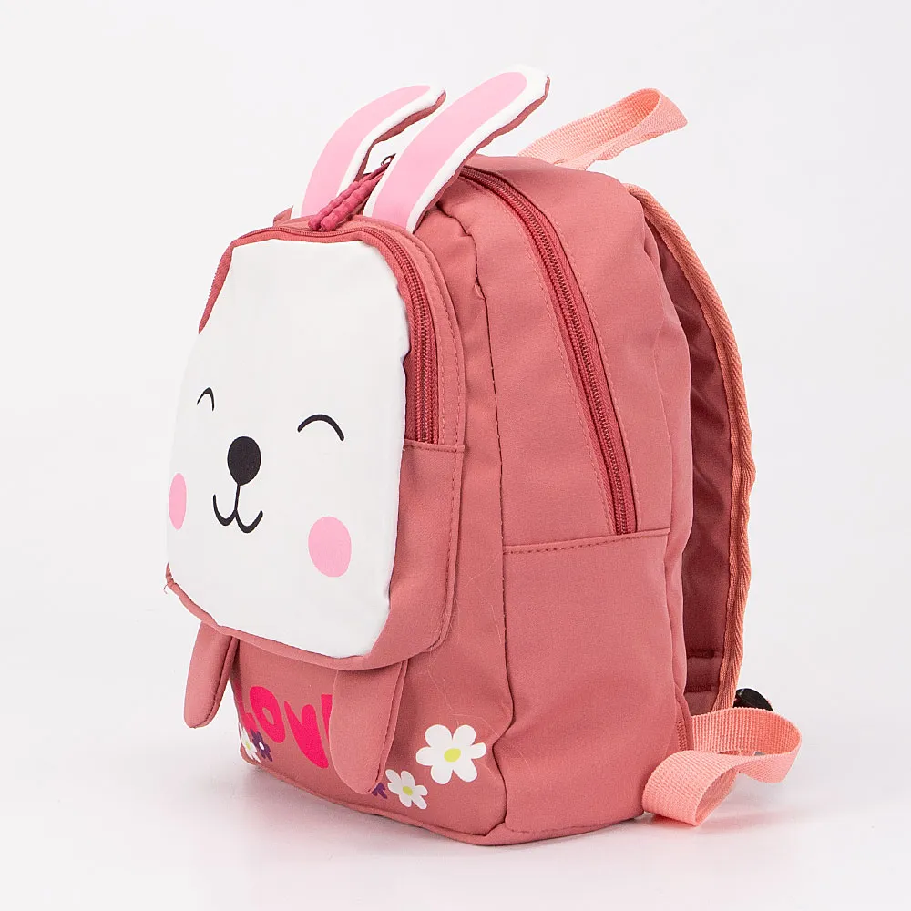 Детский рюкзачок от торговой марки Ecotope из текстильного материала. Декорирован изображением зайчика с торчащими ушками и лапками. Модель с лямкой-переноской и регулируемыми плечевыми лямками. Отделение на молнии. Внутри: текстильная подкладка, накладной карман. На лицевой стороне – накладной карман на молнии.