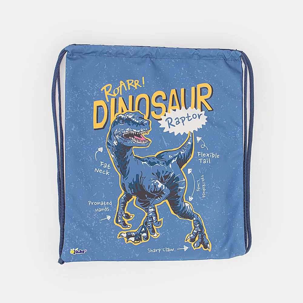 Мешок для обуви от торговой марки Оникс из практичного текстильного материала. Декорирован принтом с изображением динозавра. Отделение затягивается веревками, выполняющими также роль плечевых лямок.